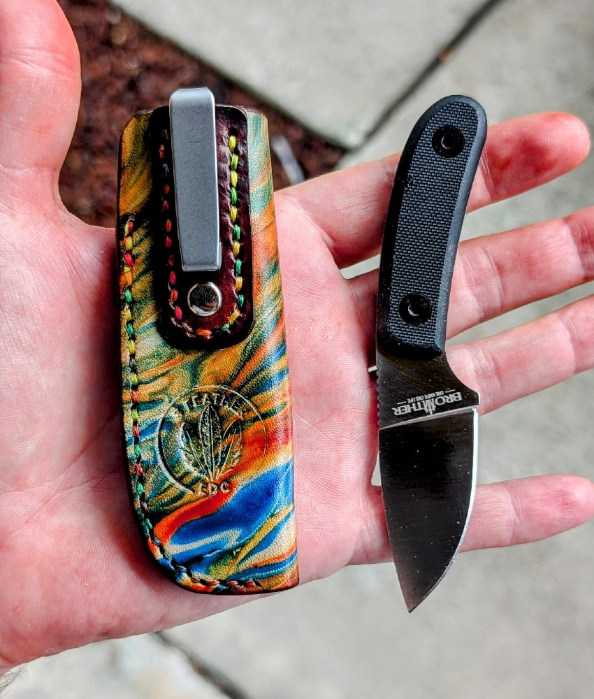 Small enough to lose, big enough to matter. This mini leather sheath with mini clip is perfect for your itty bitty everyday carry. Fits the Esee Candiru or the budget friendly Watchman F015.